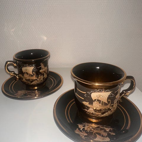6 stk kopper og 6 stk fat