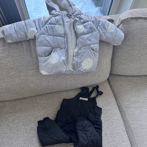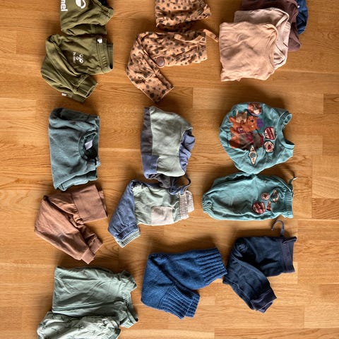 Bukse fra hm str 74, ullstrømpebukse og bomullsstrømpebukse str 74-80 og antiskli sokker str 18. Ullstrømpebuksa har en liten blåbærflekk. Selges samlet for 100,-
