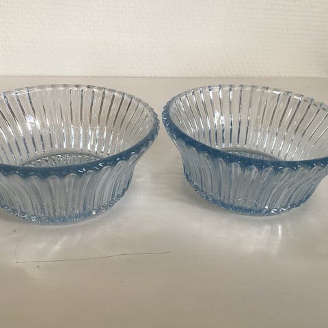 Sett med lyseblått / isblå glass, formpresset, til servering / desserter.