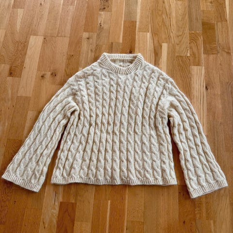 Nydelig hjemmestrikket genser «Sweaterno15» fra Myfavouritethingsknitwear. Strikket i garn fra eksklusive Knitting for Olive i merino og silk mohair i fargen soft rose. Strikket i en litt stor str S.