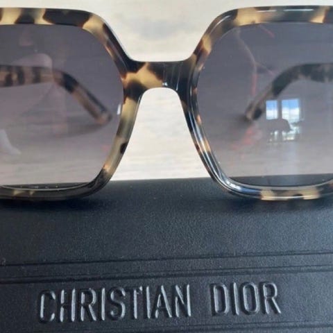 Dior solbriller for dame i brun farge. Designet med store linser og en elegant innfatning, ideell for både solrike dager og stilfull bruk. Leveres med original eske.