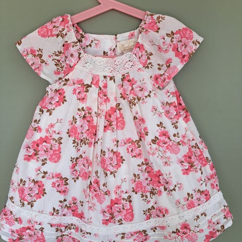 Ny pen kjole med blonde detaljer str. 98/104, 2-4 år selges.
