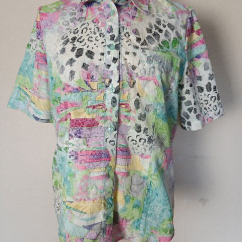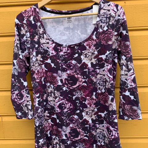 Pent topp str. 42/44, altså str. L selges. Med V-ringning og splitter på sider. 80% bomull, 15% polyester, 5% elastan. Ikke noe bruksmerker.