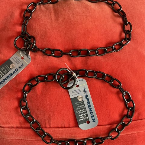 Selger 2 helt nye ubrukte seler, 2 halsbånd og et leiebånd.