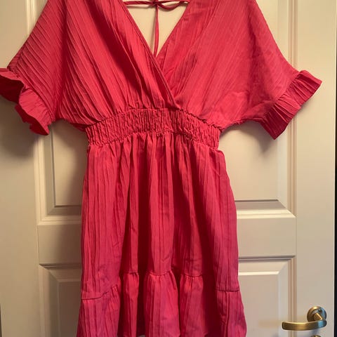 Orange bade kjole til salgs i str M. Lett og luftig, aldri brukt.