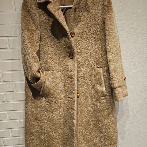 Skjerfet er onesize, og fargen er beige/brun med noe lysere "friller"