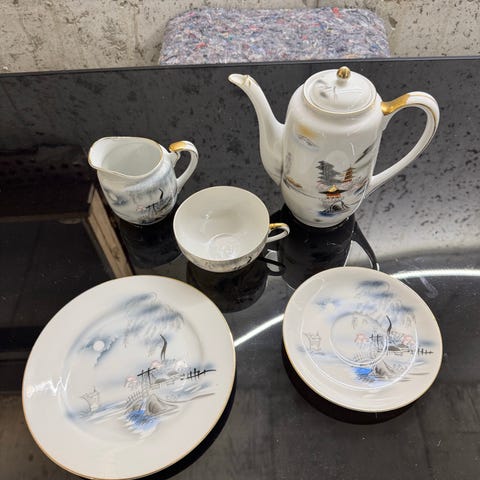 kutani, hayashi, japansk porselen, tekanne, håndmalt, japan, keramik, vintage, samler, kutaniyaki, gullkant, retro