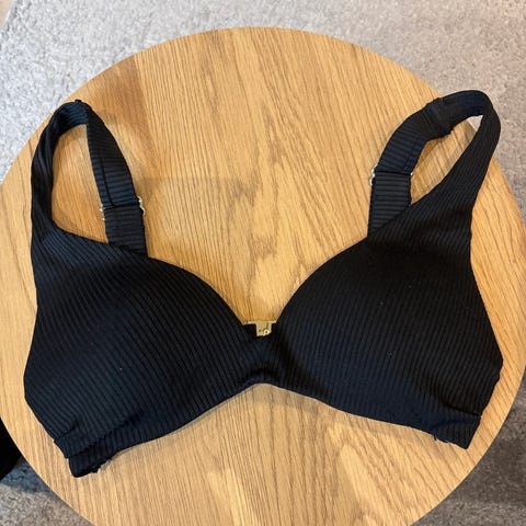 Kjøpt brukt på tise, men den var dessverre for liten! Rå fin! Lapp er klippet bort men vil si den er xs-s. Jeg er 80C så passer mindre enn dette.