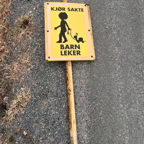 Barn leker og kjør forsiktig - skilt selges.