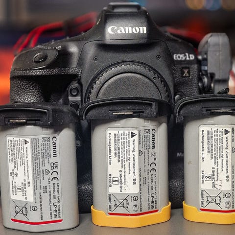 Det selges med 1 originalt batteri, lader for 2 batterier, USB-kabel, reim og i original emballasje med manualer etc. Ett CF-minnekort kan følge med for et lite tillegg om ønskelig.