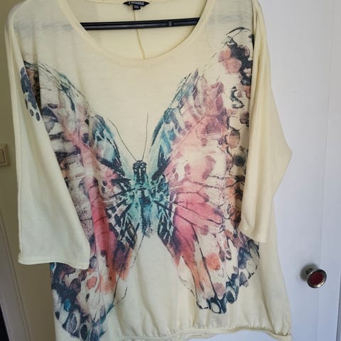 Fin overdel selges. Ca. str. 44-46. Lite brukt. Merke: "Addizione". 50 prosent bomull og 50 prosent Modal.