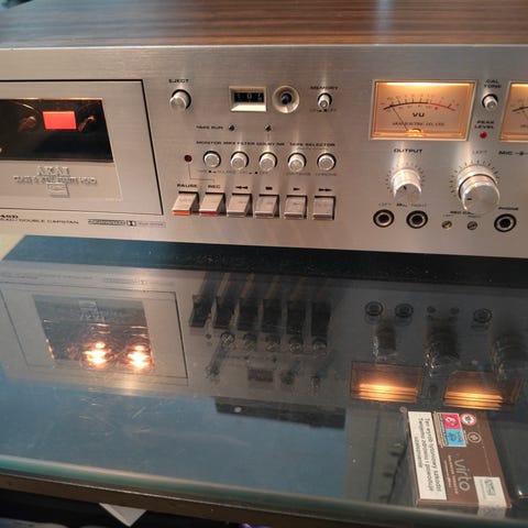 Akai GX-210D Stereo Reel to Reel Tape Recorder (1973-77) selges, den er kommet tilbake fra verksted etter overhaling , renset, ny pære, så denne er i meget bra stand både teknisk og kosmetisk . Dette er en vintage japansk elektronisk. Produsert mellom 1973 og 1977. God, tung og solid spiller med flott design!