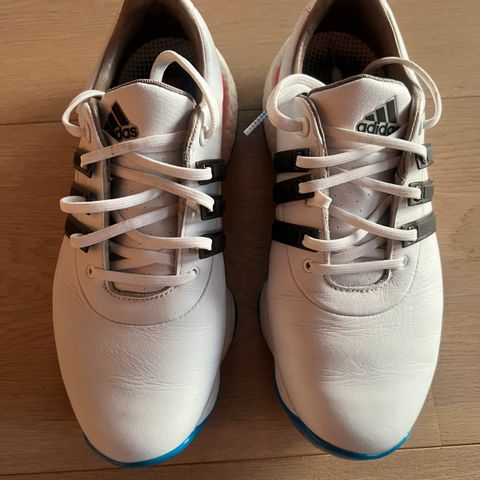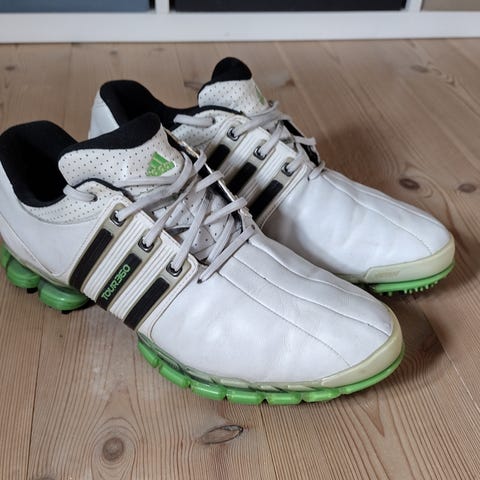 Gjør et kupp! Jeg selger et par så godt som ubrukte golfsko fra Adidas pga. disse ikke passer til min fot. Kun brukt et par runder på golfbanen, så de fremstår som nye sett bort fra litt gress under skoene. :-)
