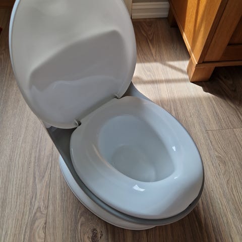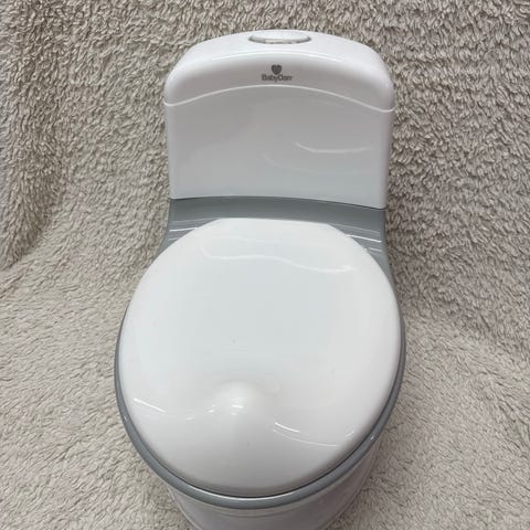 En praktisk og komfortabel potte fra BabyDan. Potten er formet som en toalettstol, og lager spolelyd når du trykker på knappen. Potten har en separat innerpotte, som gjør den enkel å tømme og rengjøre. Den har antisklimateriale på undersiden, slik at den står støtt på gulvet