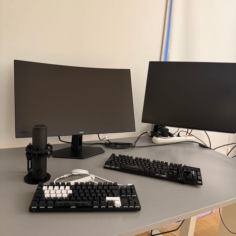 Selger mitt godt vedlikeholdte gaming set-up og stol, perfekt for nybegynnere! Alt er kjøpt mellom 2020-2022 og selges grunnet voksenlivet tok meg igjen.