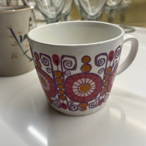 Drøyt 16 cm diameter, 10,5 cm høy