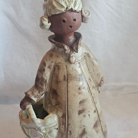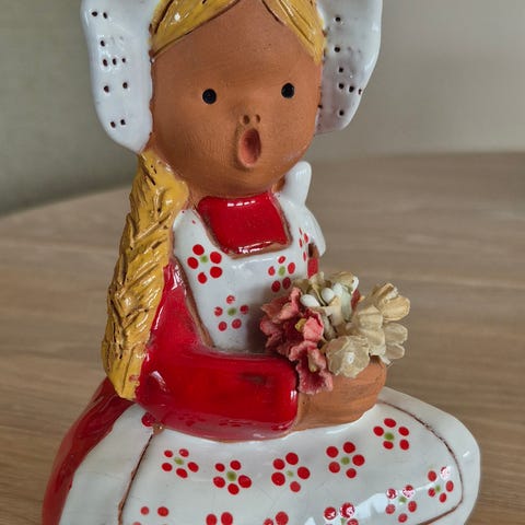 Gipsfigur pynt dame med hatt til å henge på vegg