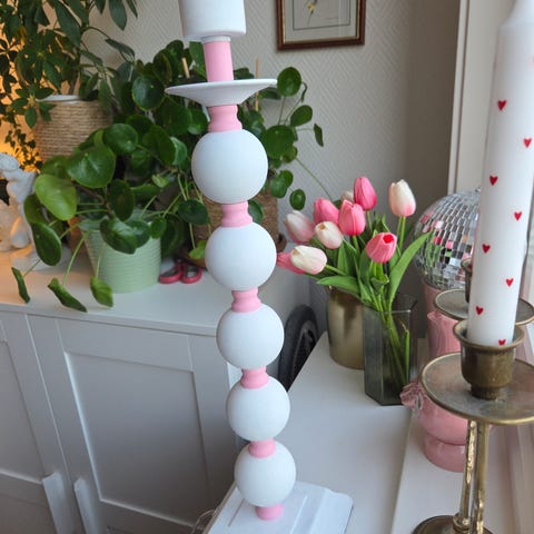 Rosa Bordlampe og Blå Lampeskjerm