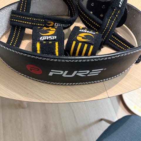Solid løftebelte av skinn i størrelse S fra NTRS. Lite brukt, ingen synlige merker.