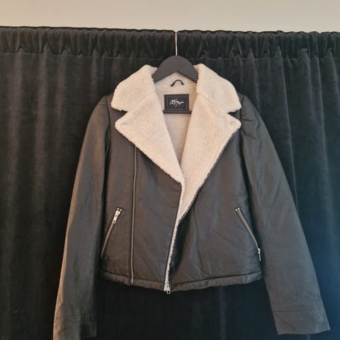 Jakke i semsket skinn tekstur (fake fur) fra twist tango. Str 36. Som ny. Kjempefin jakke med myk innside. Selges da den ikke brukes. Nypris var ca 2000