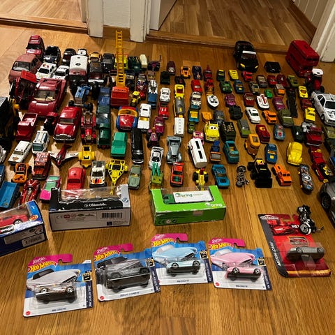 Har 72 stk. leke biler med noen maskiner også ,