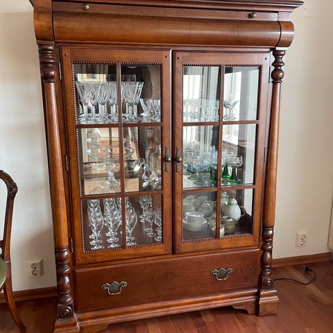 Meget pent brukt vitrineskap. Askefiner svart lakk.