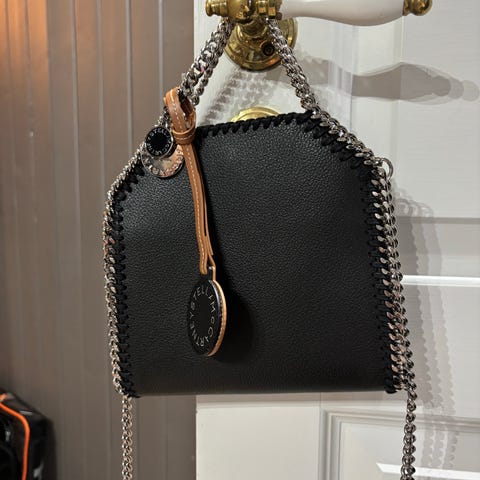 Innelomme med glidelås og en liten lomme til mobil. Rosa silkestoff inni.