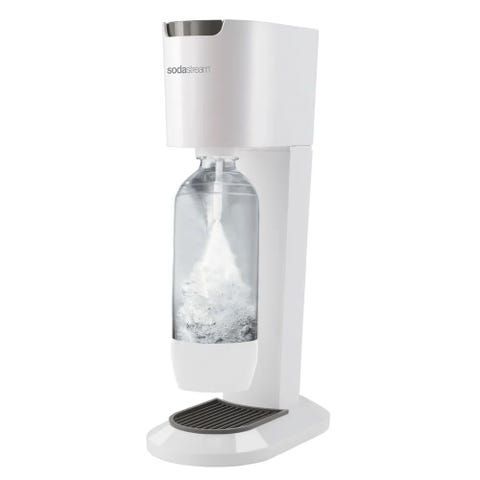 Boblevannmaskinen Art™ med retrodesign og et praktisk håndtak som gjør det enkelt å tilsette akkurat nok mengde bobler.
