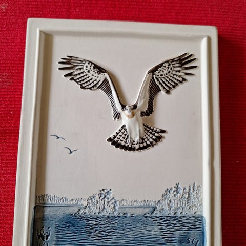 Vakkert bilde av orrfugl leik. Kun laget i et begrenset antall. Diameter 16cm. Diameter med messing-ramme 23cm. Meget god stand. Oppheng for vegg.