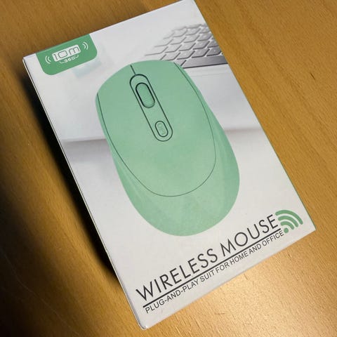 Trådløs mus, funger helt fint ikke brukt så mye, som dere ser på bilde kan den også bytte farger. Følger med lader. Kan brukes opp til 72 timer så må den lades. Musematte følger ikke med!
