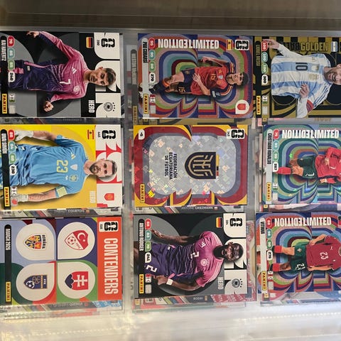 Komplett samling med Panini - Uefa Euro 2020 + Irland , Nord-Irland og Skottland (som kun kom på det britiske markedet). Totalt er her 507 kort. Alle er tatt rett fra pakke og i rett i perm så kvaliteten er : Pack fresh/ubrukt. Selges for : 1900kr (det blir under 4 kr kortet som må sies å være en god pris) der er porto med sporing inkludert i prisen.. Betales med Vipps.