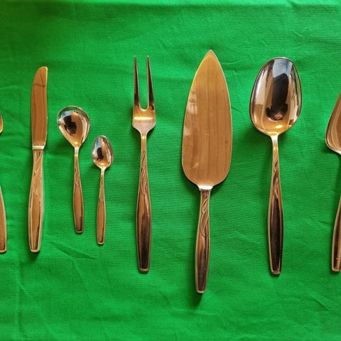 Sølv NM 90, selges kr.1200. 30 deler. 12 kakegafler, 4 kniver, 6 gafler og 8 skjeer.