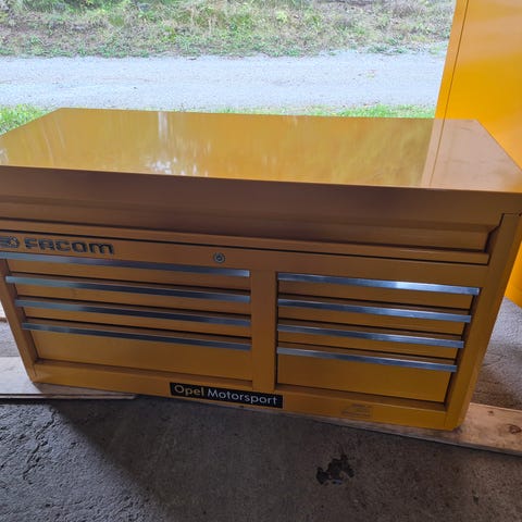 Facom Chrono Jet 8 grå verktøyvogn. Kjøpt i 2003. Bare pent brukt til hobby bruk. Det må skiftes fjær i alle skraller, dette er et rep. Set å få kjøpt på Facom.