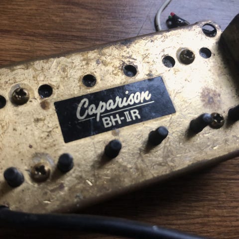 Dette er en bridge humbucker fra gitaren: dean ml warbird. Finner nesten ingen info om den, men jeg hører at den har høy output og høy gain. mann ser at den er litt skitten i bildene, men det gjør ingenting med spillingen. dette er en humbucker mann ikke finner på noen andre gitarer, så den er veldig sjelden. mangler skruer, men det kan jeg kjøpe. send melding om mann skulle lure på noe mer. kan sendes : )