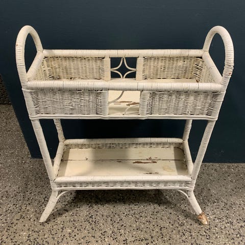 Kurv kommode/hylleseksjon, fra kremmerhuset, selges som den er. Noe skjev, så må evt ordnes. Nypris var 599kr. Se bilder for bla mål.
