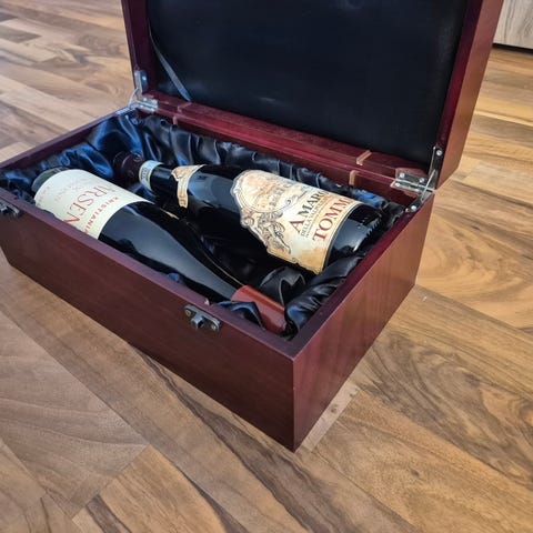 Gaveboksen egner seg spesielt godt til vinflasker, men kan også brukes til andre flasker.