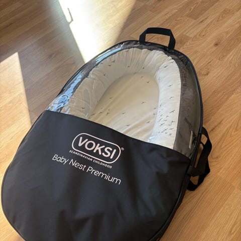 Voksi premium babynest selges. Dette har mesh i bunnen, så det puster godt og blir ikke klamt for babyen. Har vært veldig fornøyde med dette, brukt i ca 5 mnd til en baby. Trekket er nyvasket. Nypris 1299kr.