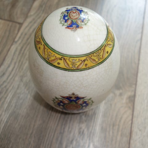 Gammel flott blomstervase ,,,,Clossone.....flere mangler i emaljen (se bilder)...høyde ca 26cm......se bilder for stand og anmerkninger