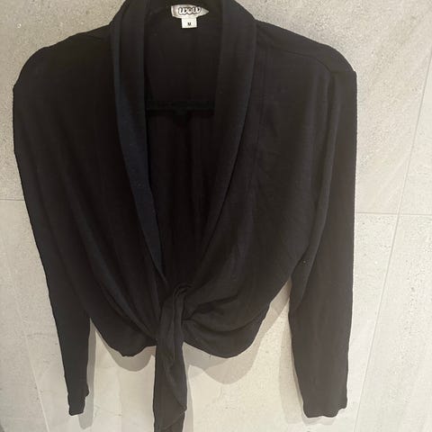 Elegant, svart cardigan fra Sandro i ren ull (92 % ull, 8 % kasjmir-ull). Pent brukt. Str. 1, som tilsvarer S/36, Ville nok sagt 36/38 på denne.