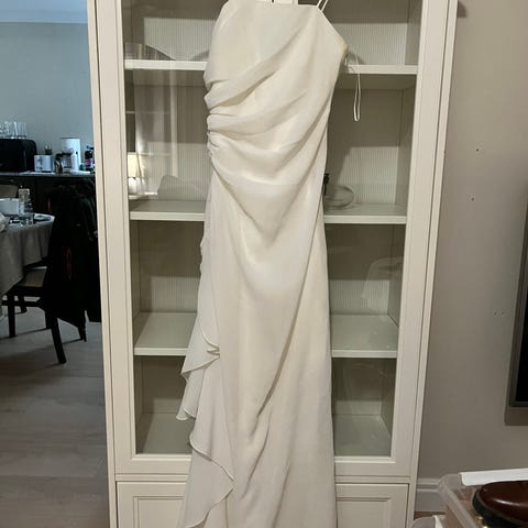 Jeg selger min brudekjole fra Judy Hansen’s Atelier, selv kjøpt brukt. Opprinnelig i størrelse 40, men sydd inn til en xs. Er 169 cm høy og brukte 7 cm høye sko. Den er renset etter bruk. Kjøper kan prøve kjolen før eventuell handel.