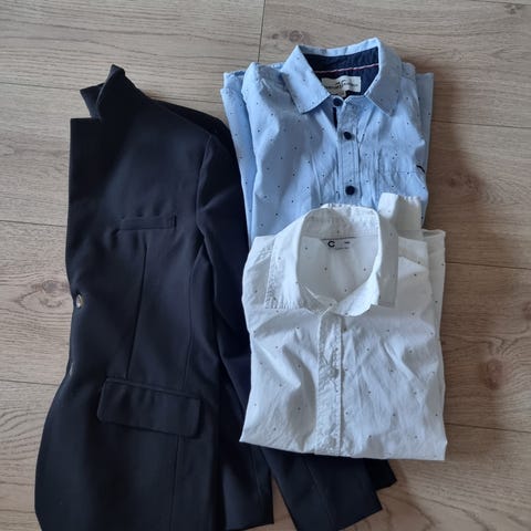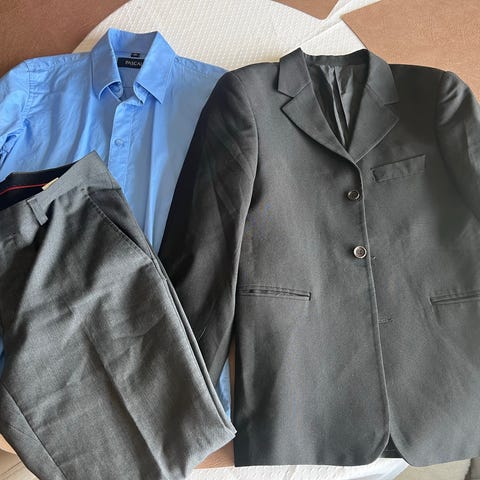 Selger dressjakke, dressbukse og to hvite skjorter. Alt er pent brukt.