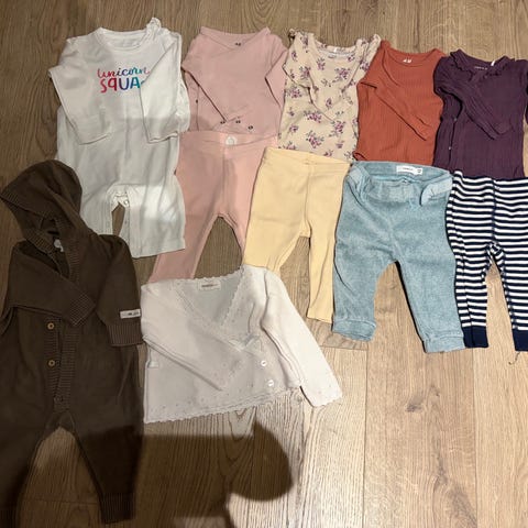 Klespakke jente i str. 68 selges. Lite og pent brukt av ei jente. Mange av klærne kommer fra Name it.
