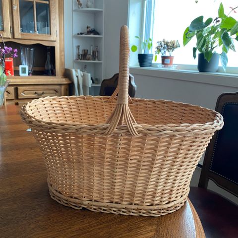 Vi har fått inn for salg en retro frukt kurv, i fargen lys tre. Info: kan stå og med som en skål oppi, formet som et eple, laget i ekte tre. Se bildene. Høyde: 30cm.