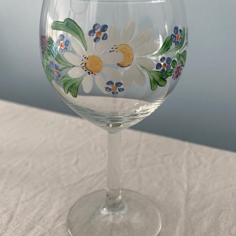 2 sommerlige vinglass fra Nille selges samlet for 40 kr. H = 21,5 cm og ø = 9,5 cm øverst. Røyk- og dyrefritt hjem. Må hentes hos meg på Langhus (sendes ikke). Har Vipps. Se gjerne mine andre annonser. Søkeord: rødvin * hvitvin * cider * marihøne * prestekrage * blomster * blomstrete