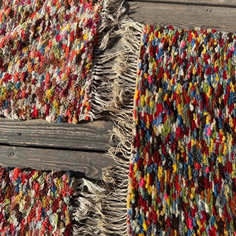 Selges da det ikke brukes. Kjøpt i Marrakesh i 2015. Brukt som veggteppe, putetrekkene trengs å repareres, og har forskjellige mål.