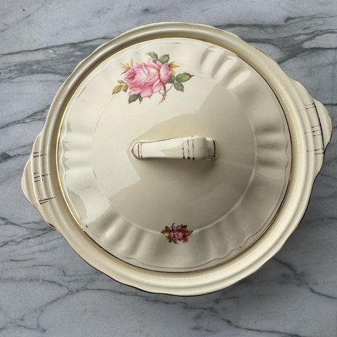 Flott terrin med lokk fra Egersund i mønsteret Ranunkel
