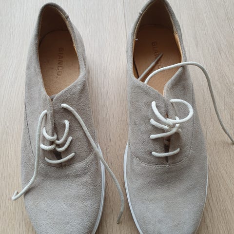 Pene og gode sko i et semsket materiale. Kun brukt et par ganger. Kjøpt på DNA
