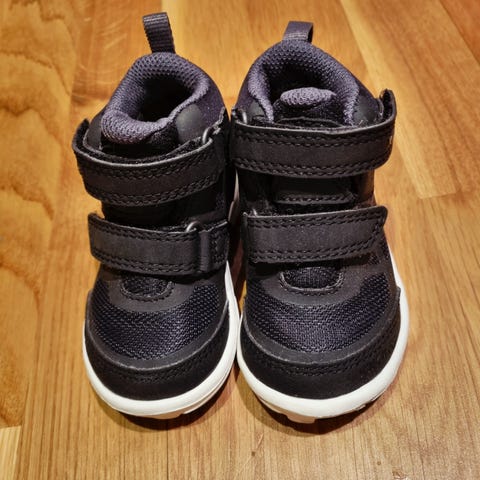 Pent brukt. Nike er ofte litt små i størrelsen, så kan nok tilsvare en 21, fordi om det står 22. (har derfor registrert skoen som størrelse 21!!!)