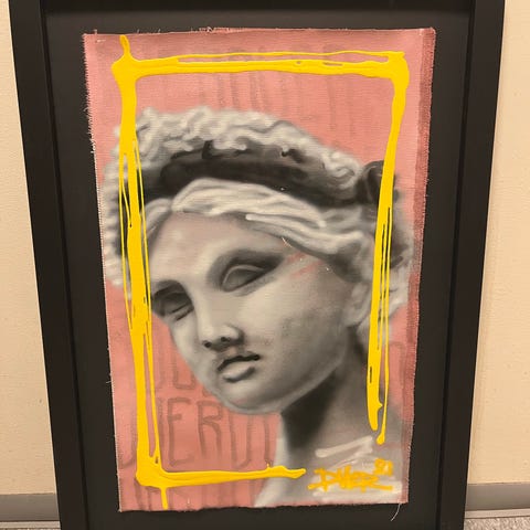 Nydelig one of a kind stencil kunst av norske Von Dieche (Malene Dekke Eik). Innrammet hos Tores rammer.