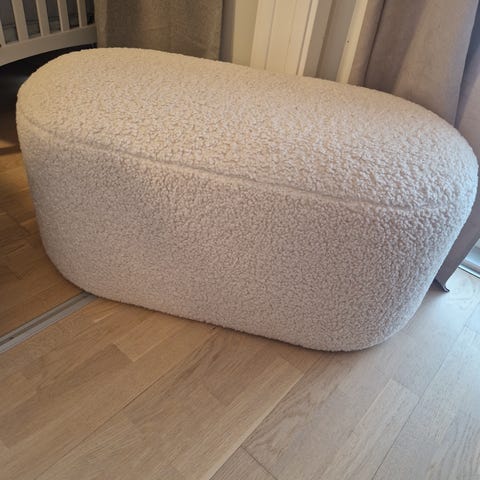 Orebo puff fra Jysk i beige / offwhite teddy. Pent brukt, kun vært til pynt. Kjøpt i 2024.